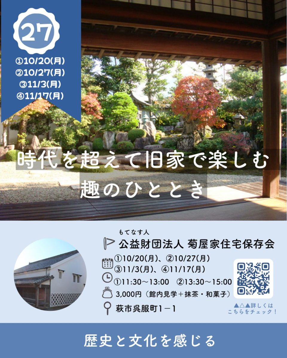 秋の萩城下町をじっくり楽しめるプランが目白押しの 「萩まちじゅう博覧会 秋2025」です。